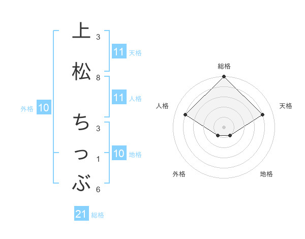 上松 ちっぶさんを姓名の画数から五運を鑑定