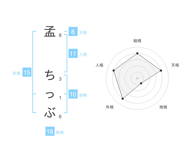 孟 ちっぶさんの総格は18画の4点!
