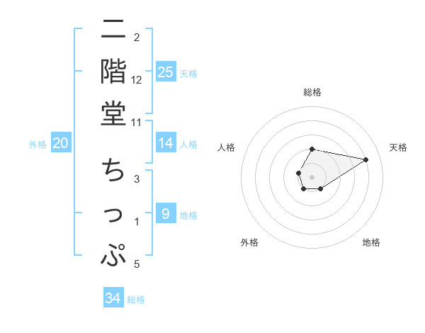 二階堂 ちっぷさんの天格は25画の4点!