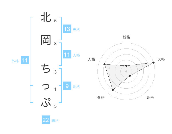 北岡 ちっぷさんを姓名の画数から五運を鑑定