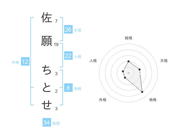 佐願 ちとせさんを姓名の画数から五運を鑑定