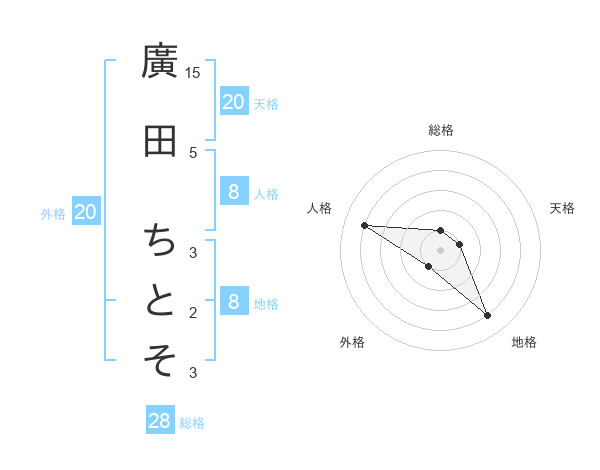 廣田 ちとそさんを姓名の画数から五運を鑑定