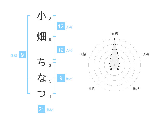 小畑 ちなつさんを姓名の画数から五運を鑑定