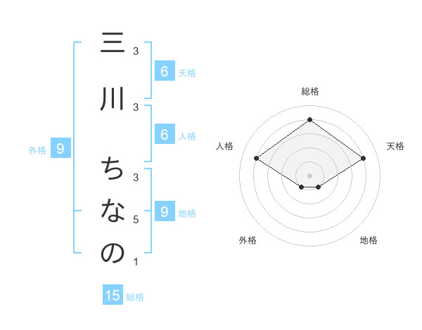 三川 ちなのさんの総格は15画の4点!