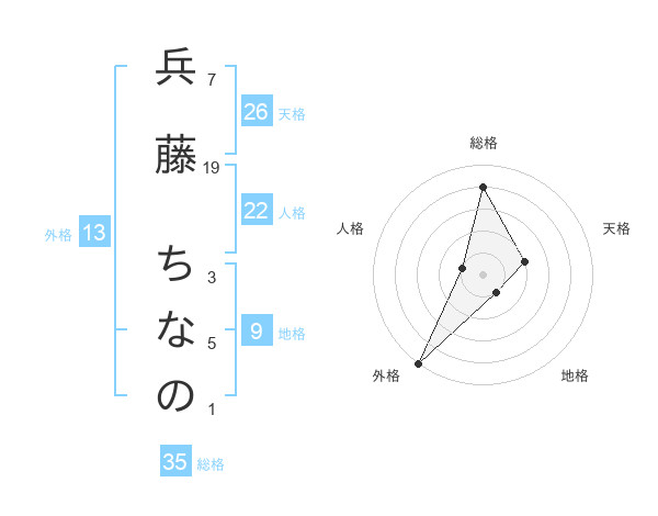 兵藤 ちなのさんを姓名の画数から五運を鑑定
