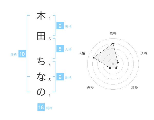木田 ちなのさんの総格は18画の4点!