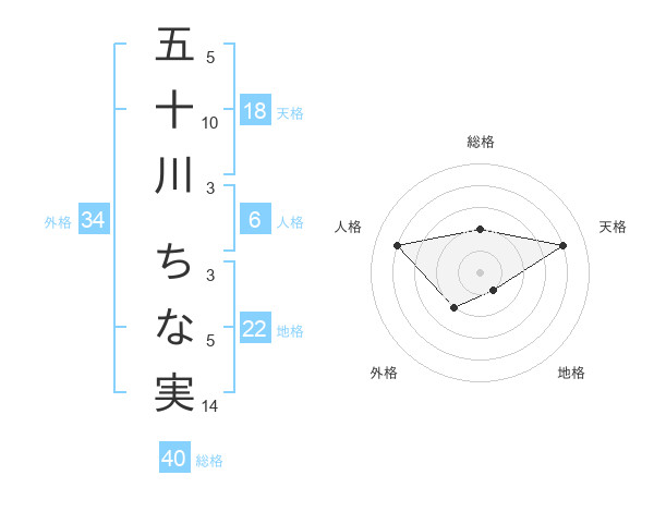 五十川 ちな実さんの総格は40画の2点!