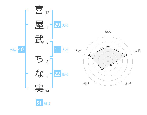 喜屋武 ちな実さんの総格は51画の3点