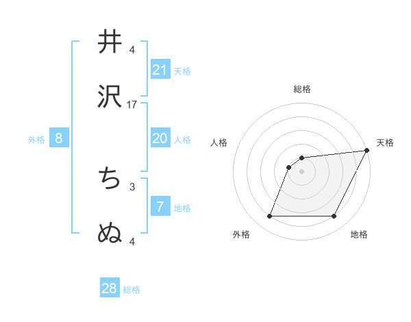 井沢 ちぬさんの天格は21画の5点!