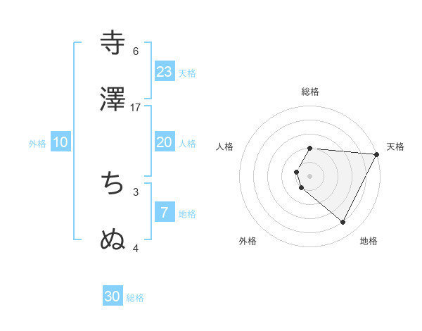 寺澤 ちぬさんの天格は23画の5点!