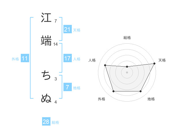 江端 ちぬさんの外格は11画の4点!