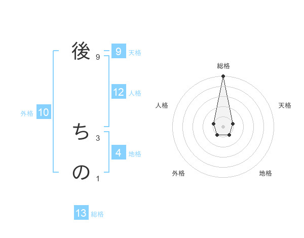 後 ちのさんの総格は13画の5点!