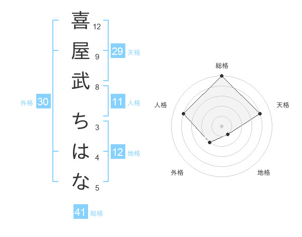 喜屋武 ちはなさんを姓名の画数から五運を鑑定