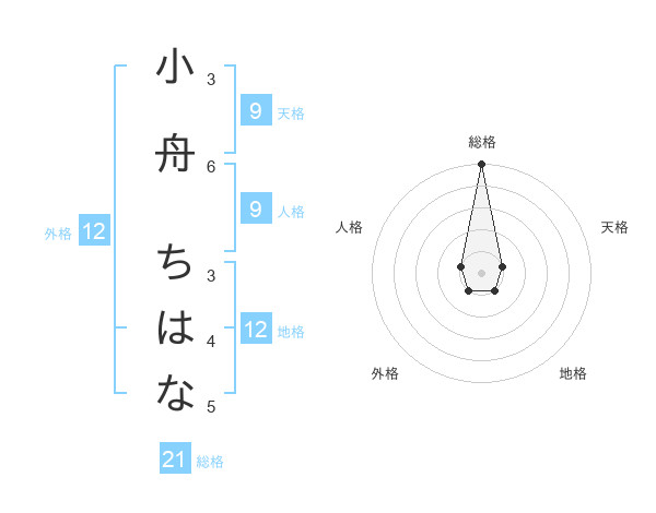 小舟 ちはなさんを姓名の画数から五運を鑑定