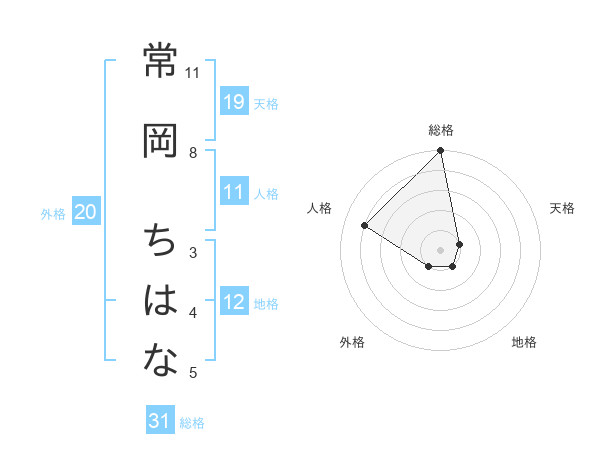 常岡 ちはなさんを姓名の画数から五運を鑑定