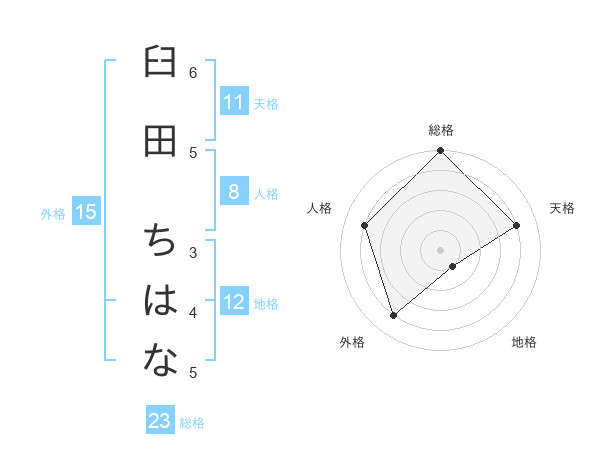 臼田 ちはなさんを姓名の画数から五運を鑑定