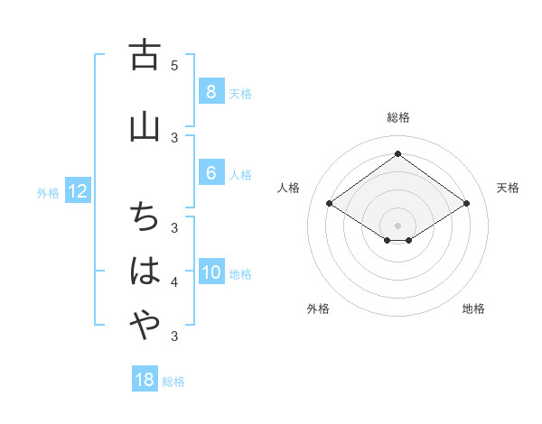 古山 ちはやさんを姓名の画数から五運を鑑定