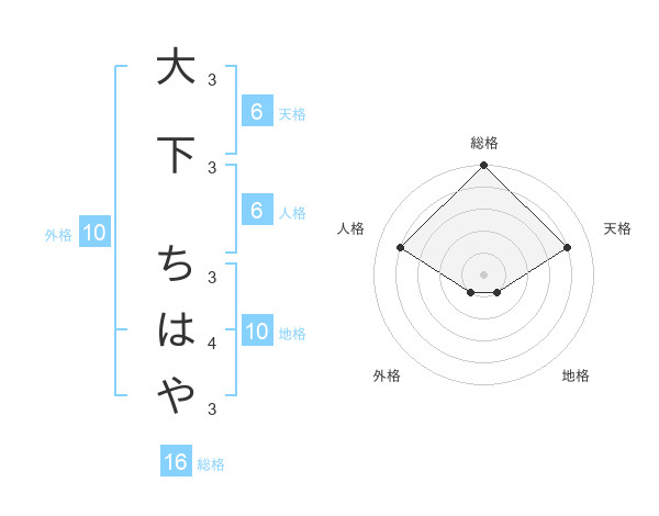 大下 ちはやさんの総格は16画の5点!