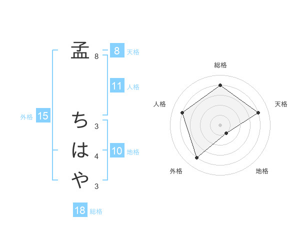 孟 ちはやさんの総格は18画の4点!