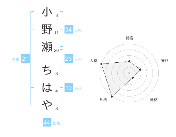 小野瀬 ちはやさんの総格は44画の2点!