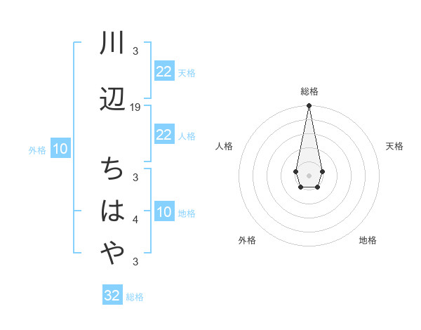 川辺 ちはやさんを姓名の画数から五運を鑑定