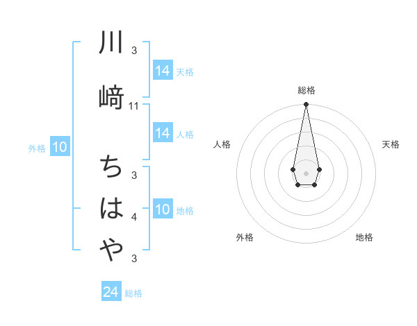 川﨑 ちはやさんの総格は24画の5点!