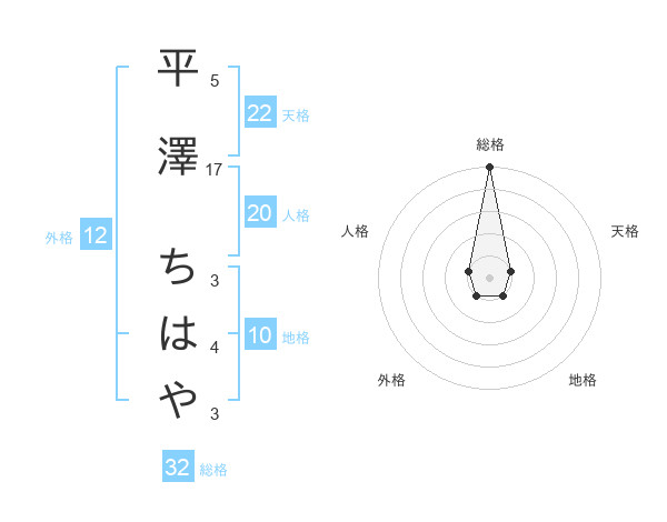 平澤 ちはやさんを姓名の画数から五運を鑑定