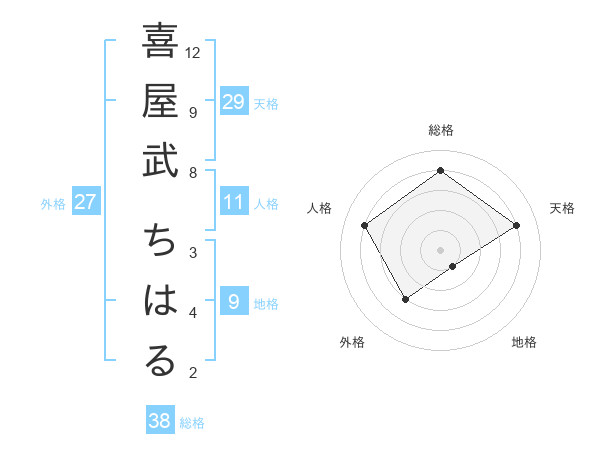 喜屋武 ちはるさんの総格は38画の4点