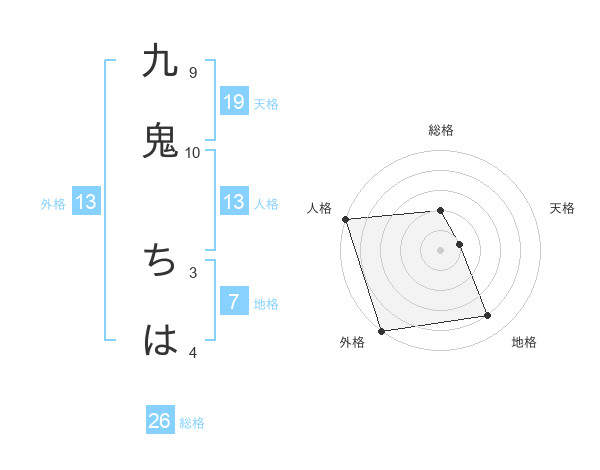 九鬼 ちはさんの外格は13画の5点!