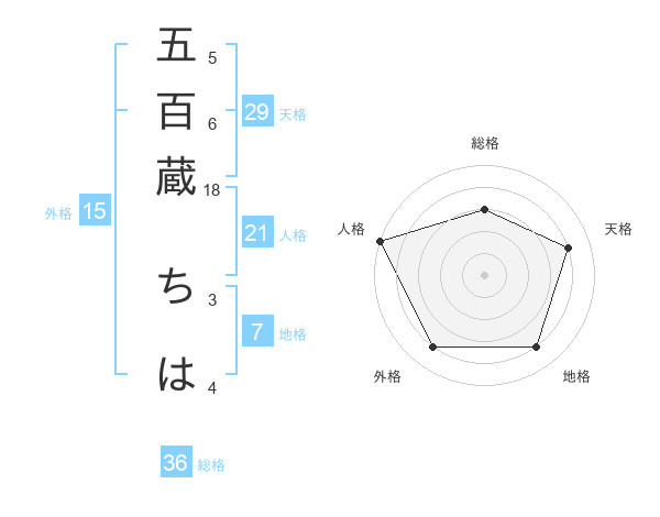 五百蔵 ちはさんの天格は29画の4点!