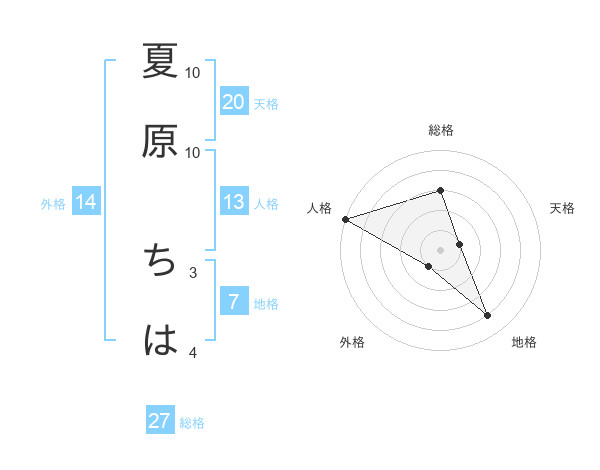 夏原 ちはさんの総格は27画の3点!