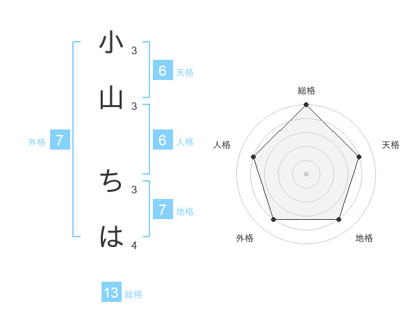 小山 ちはさんの総格は13画の5点!