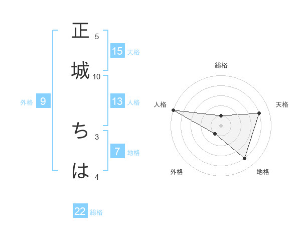 正城 ちはさんの総格は22画の1点!