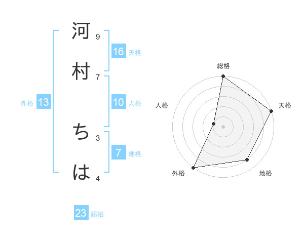 河村 ちはさんの外格は13画の5点!