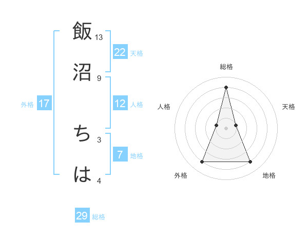 飯沼 ちはさんの総格は29画の4点!