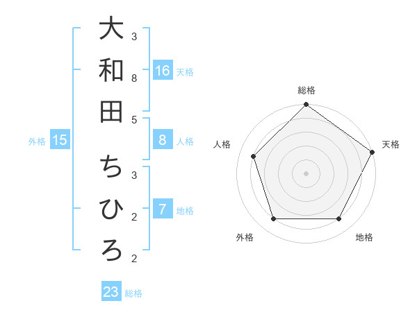 大和田 ちひろさんを姓名の画数から五運を鑑定