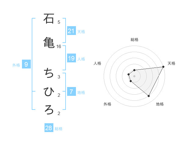 石亀 ちひろさんを姓名の画数から五運を鑑定