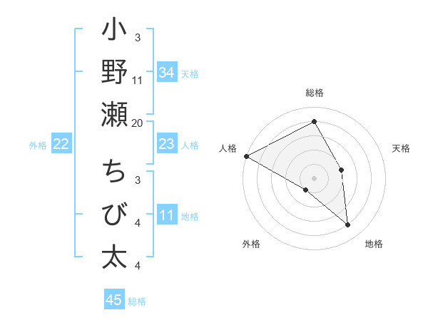 小野瀬 ちび太さんを姓名の画数から五運を鑑定