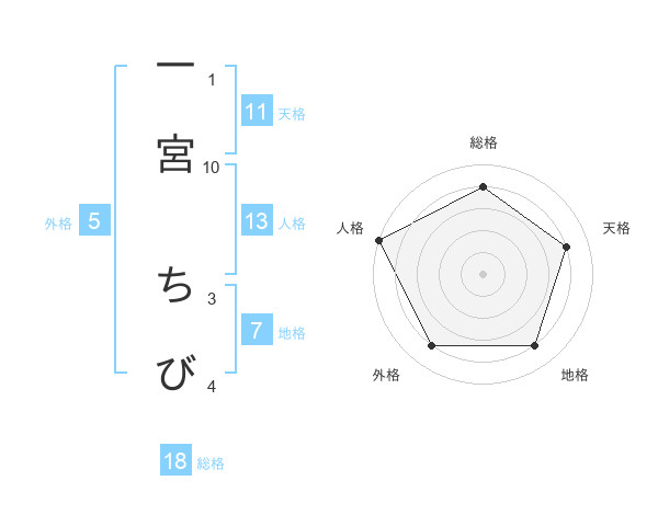 一宮 ちびさんを姓名の画数から五運を鑑定