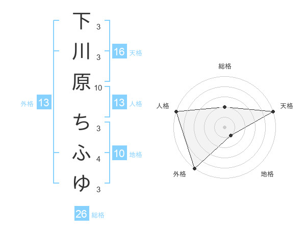 下川原 ちふゆさんを姓名の画数から五運を鑑定
