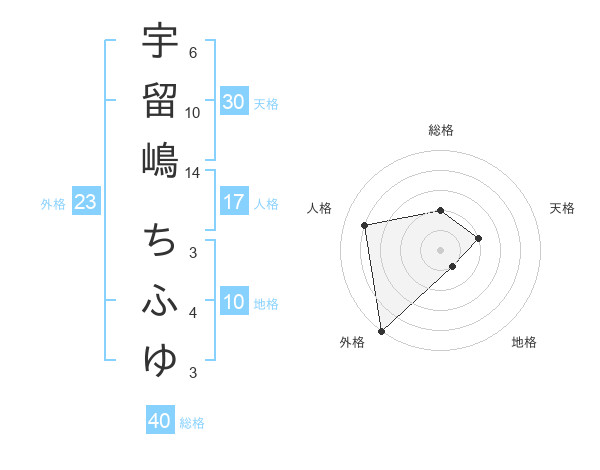 宇留嶋 ちふゆさんの総格は40画の2点!