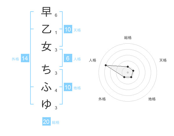 早乙女 ちふゆさんの総格は20画の1点!