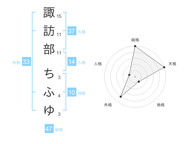 諏訪部 ちふゆさんを姓名の画数から五運を鑑定