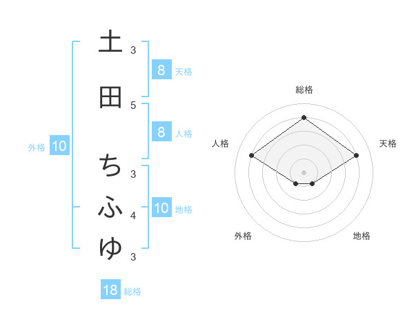 土田 ちふゆさんを姓名の画数から五運を鑑定