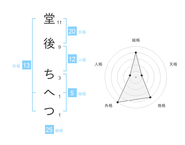 堂後 ちへつさんの総格は25画の4点!