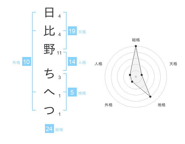 日比野 ちへつさんを姓名の画数から五運を鑑定
