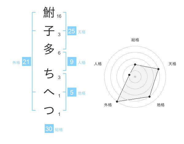 鮒子多 ちへつさんを姓名の画数から五運を鑑定