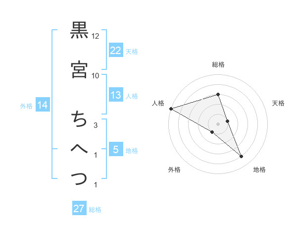 黒宮 ちへつさんを姓名の画数から五運を鑑定