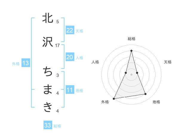 北沢 ちまきさんを姓名の画数から五運を鑑定