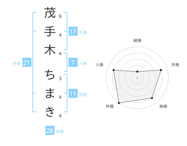 茂手木 ちまきさんを姓名の画数から五運を鑑定